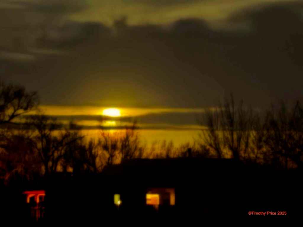 Moonset February 23, 2024 Timothy Price35 Comments Wile E. Looking handsome Mama Owl in the middle Sunset