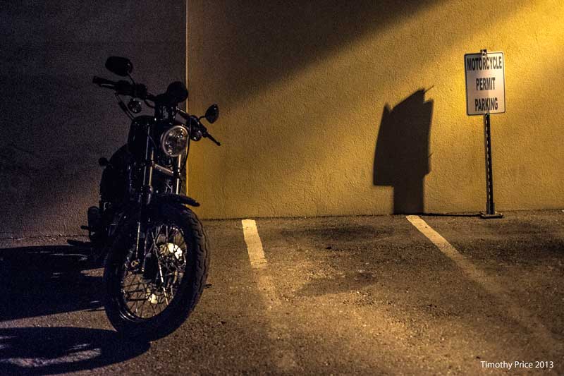 As this motorcycle passed me while I was doing 60 mph on the way home this afternoon, I just held the camera against the side window and pressed the shutter when I saw the front tire in my peripheral vision. I guess he noticed my camera, because he gave me a peace sign that luckily was in the frame.