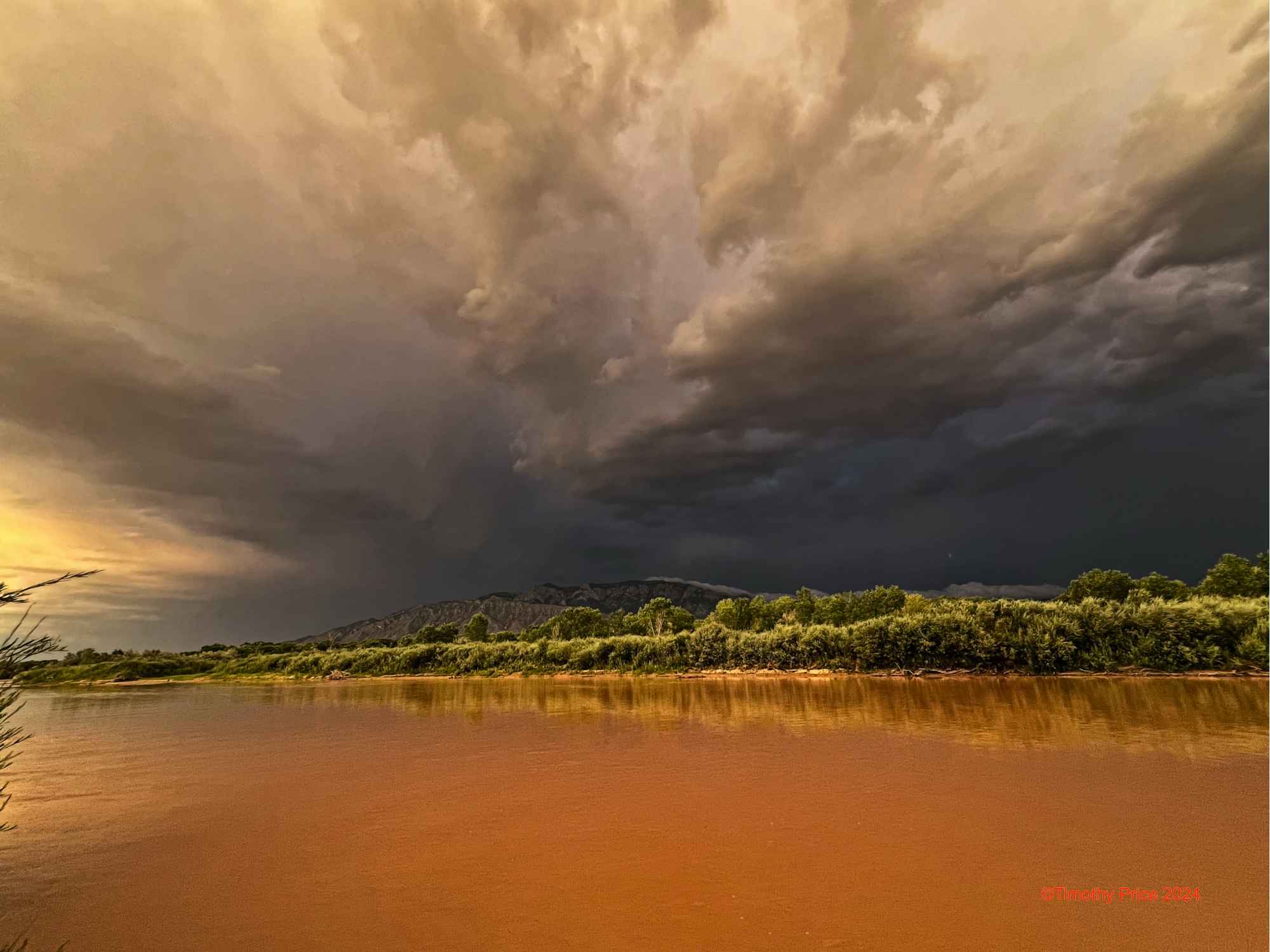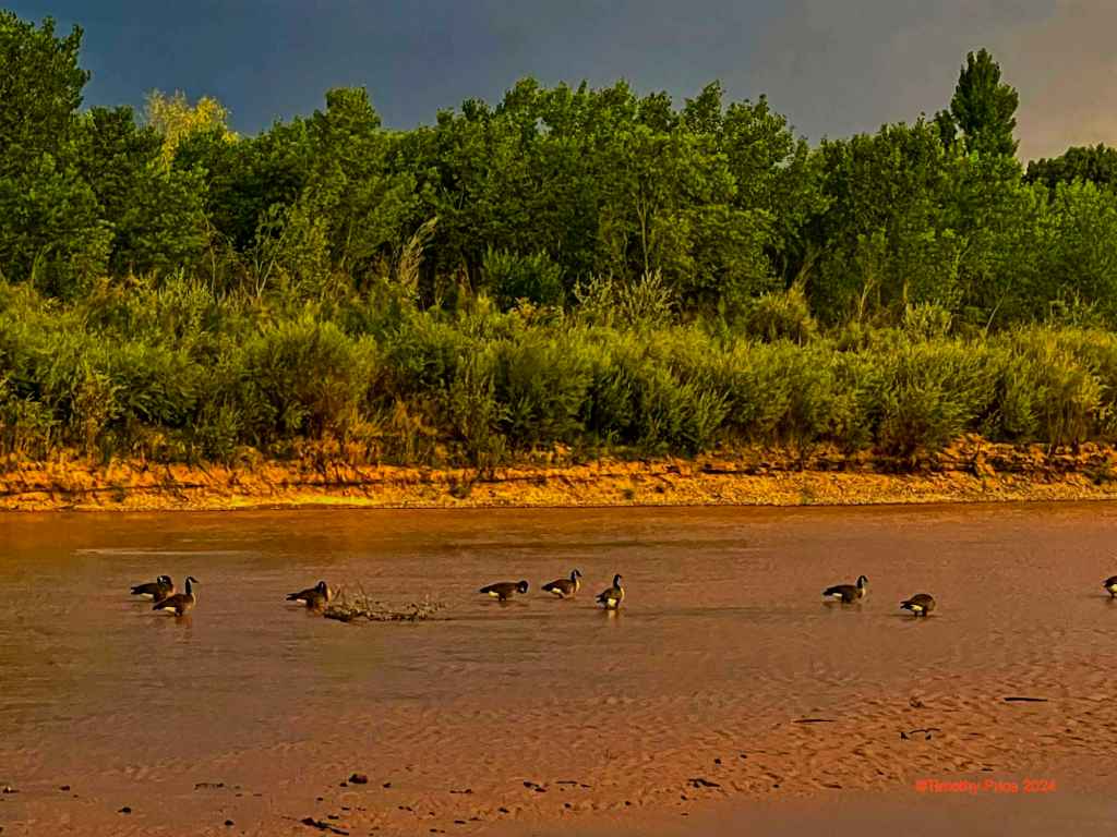 Rio Grande Red August 8, 2024August 8, 2024 Timothy Price56 Comments Simple Dawn Standing on the bankOne smells the muddy waterRio Grande running red Transfixed by the sceneWe watched the storm rolling inWere fools in the rain Knee-deep in red mudGeese forage in the shallowsSunlight streams through clouds