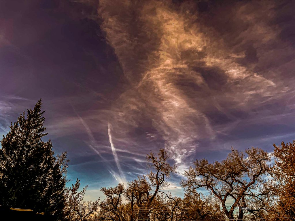 I was thinking we were going to have a sky full of colorful clouds at sunset, but as the sun went down the clouds above the lines of clouds disappeared and most of the color was trapped under and between the lines of clouds.