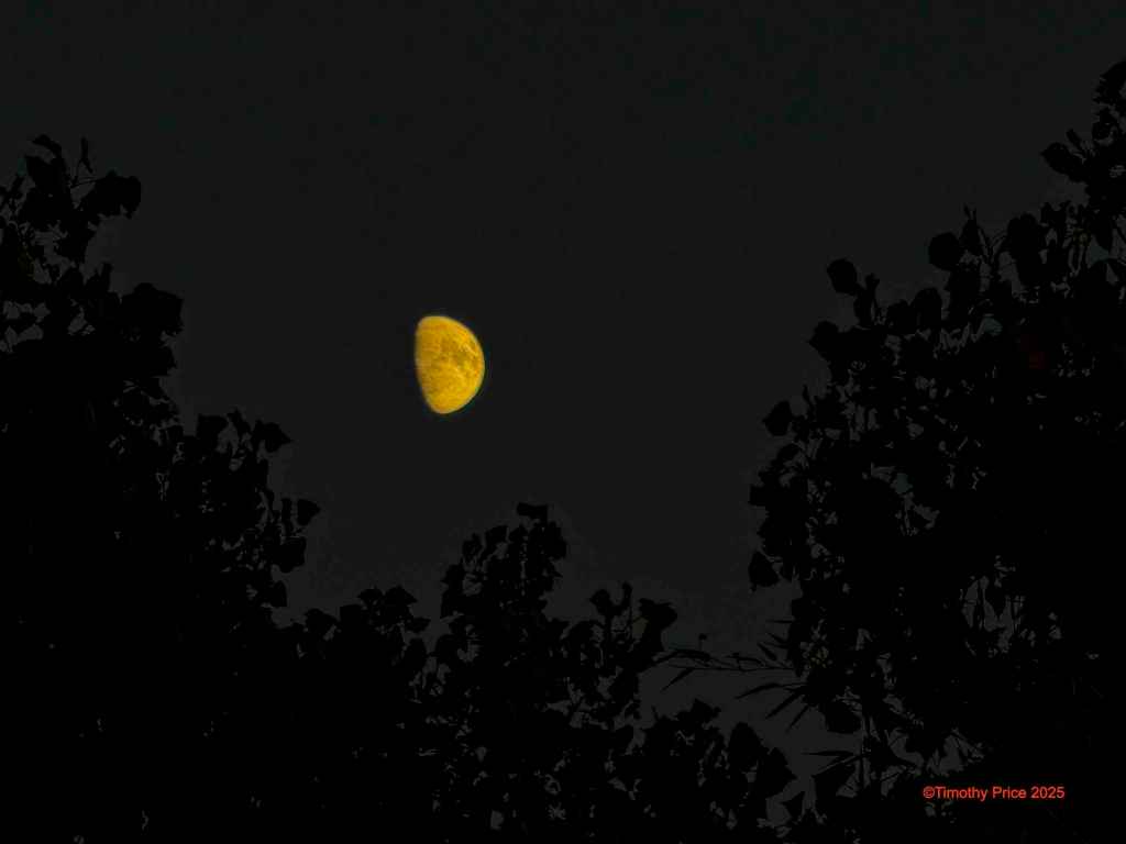 Jupiter and four of its moons. The sky was clear last night, but I could not get Jupiter’s stripes, and the photos of Saturn were blobs. There must have been an atmospheric disturbance obscuring clear shots of the planets.