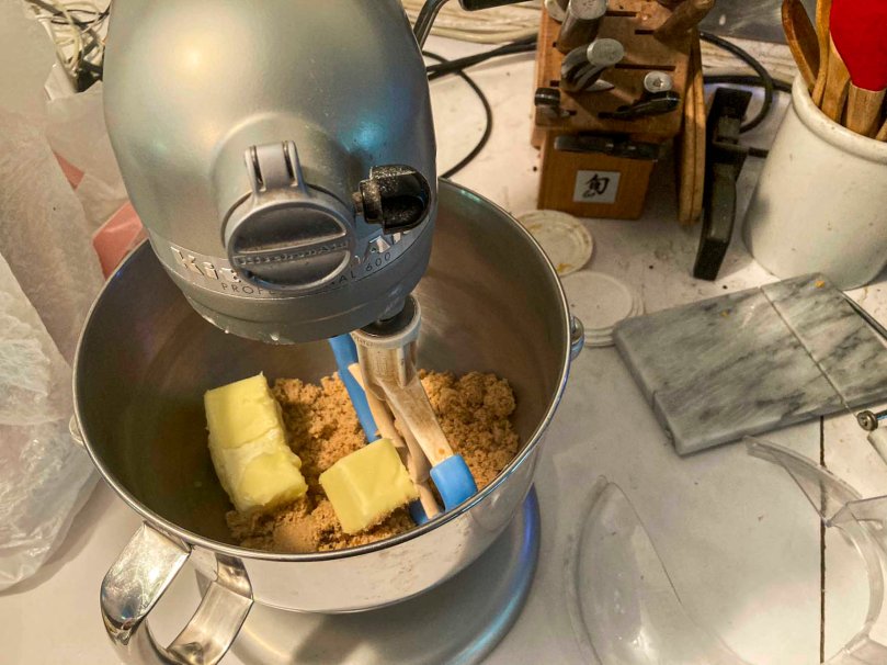 Getting ready to blend the butter and brown sugar into a smooth, fluffy paste.