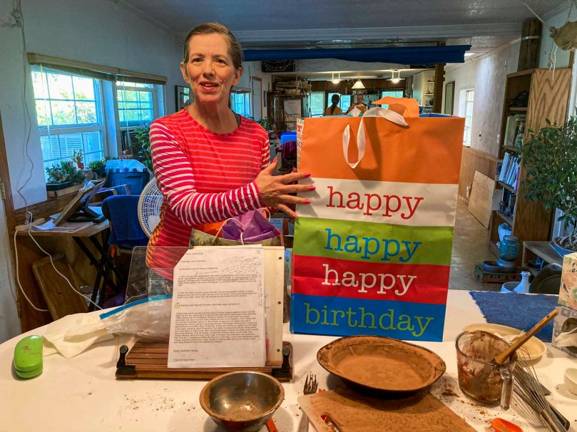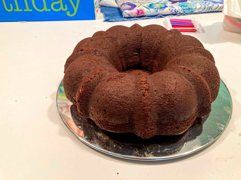We have five birthdays in October in our family. The fun has begun. I baked Laurie a cake for her birthday, which was yesterday (Saturday). I baked special chocolate sour cream bunt cake that’s a little more complicated than the plain old fashioned chocolate cake I have made for her in years past.