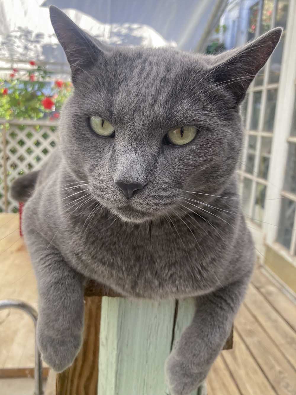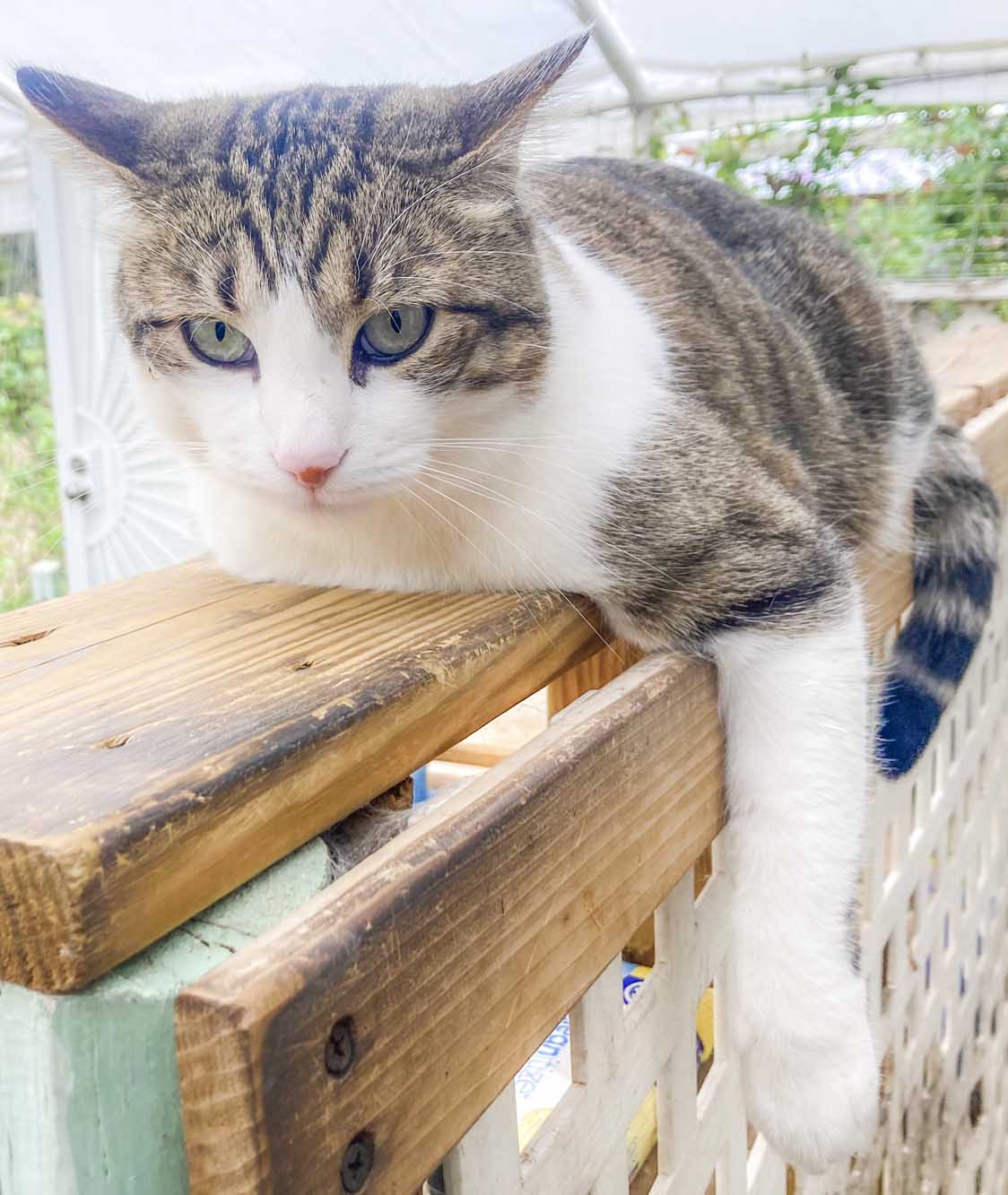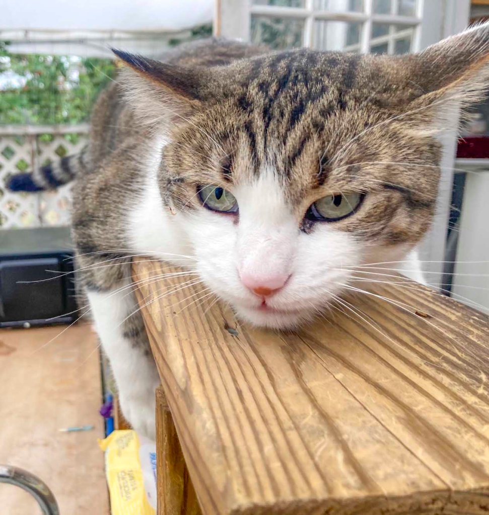 Spunk napping in the shade of a trumpet vine