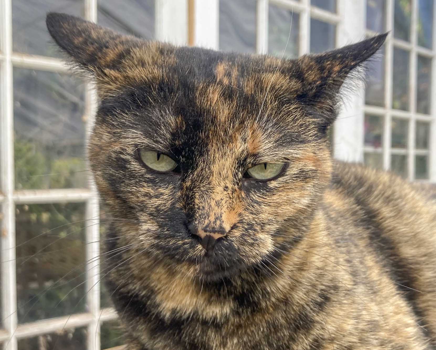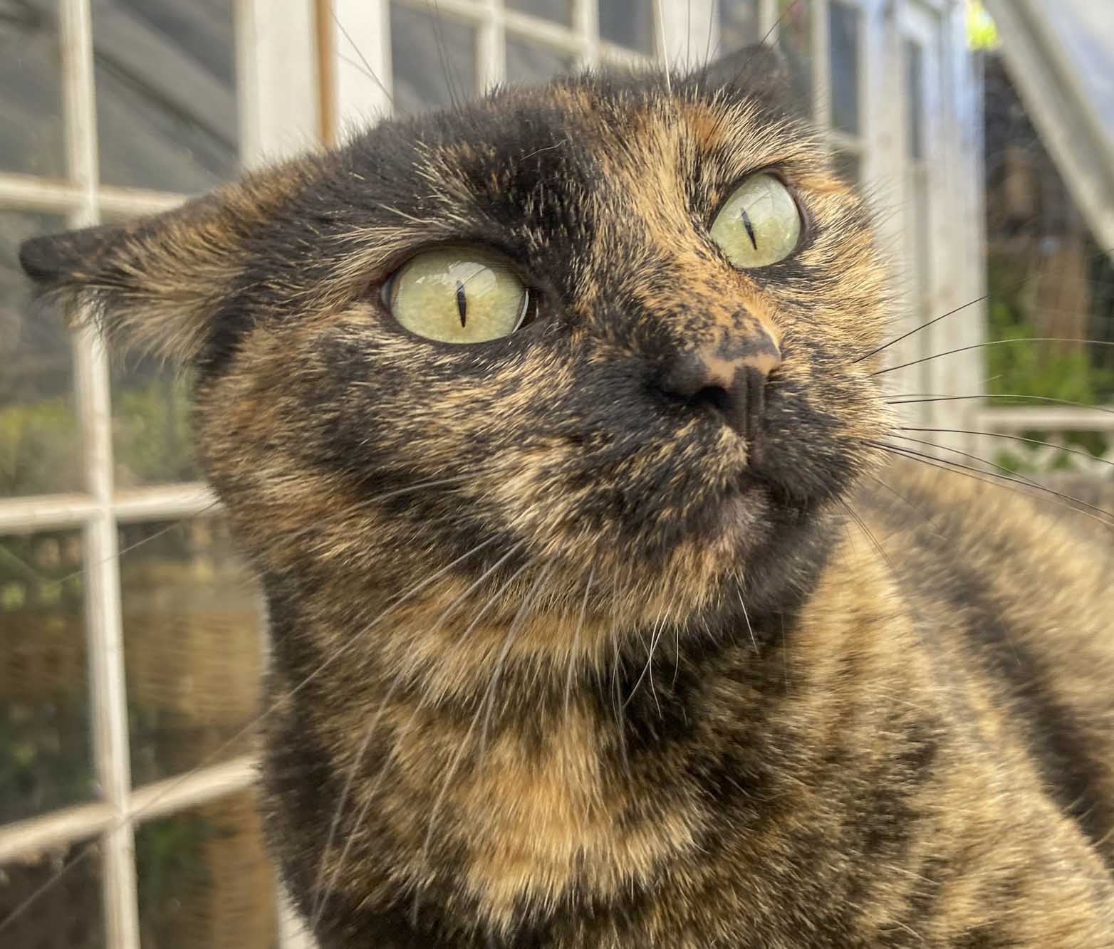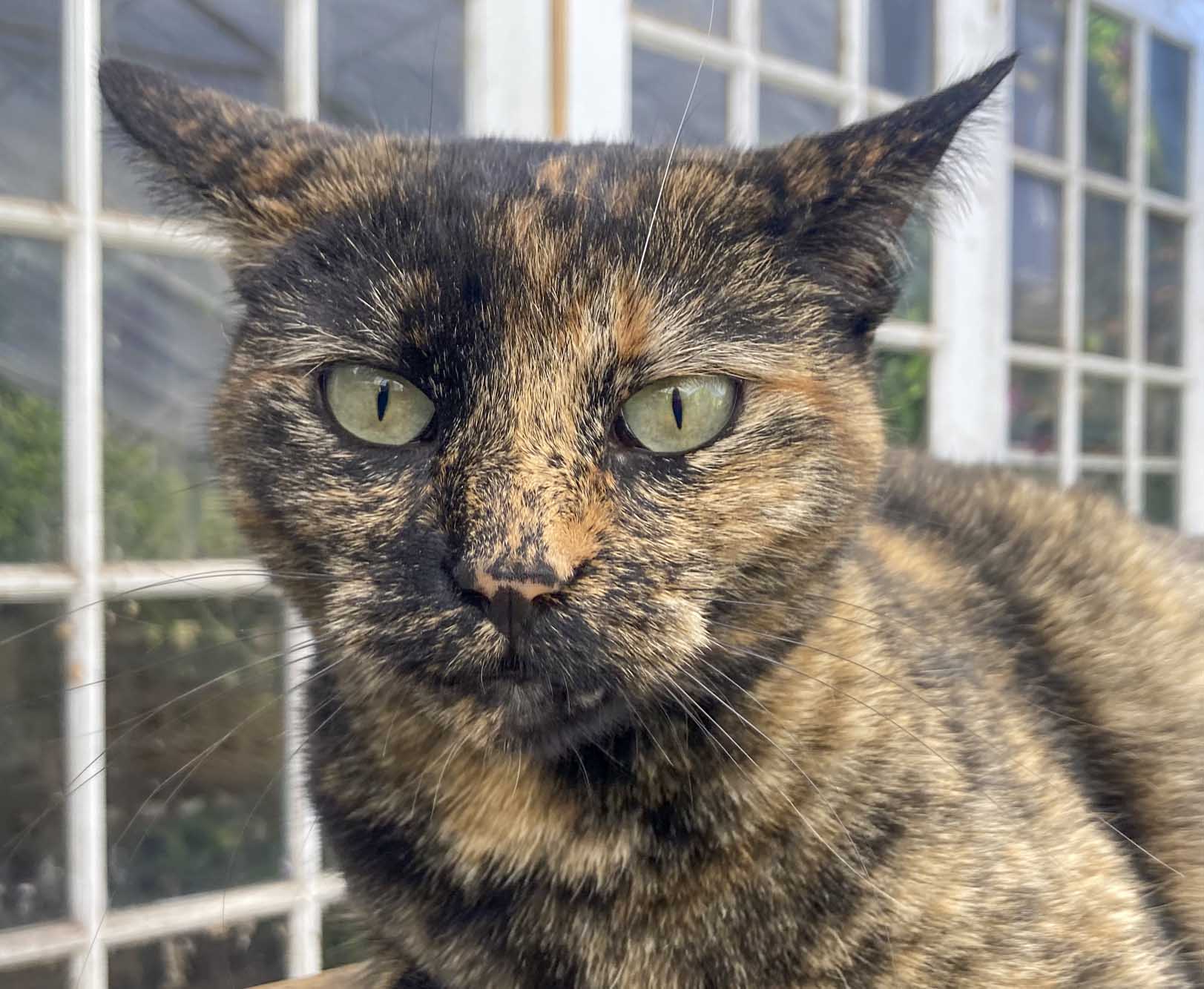 Spunk napping in the shade of a trumpet vine