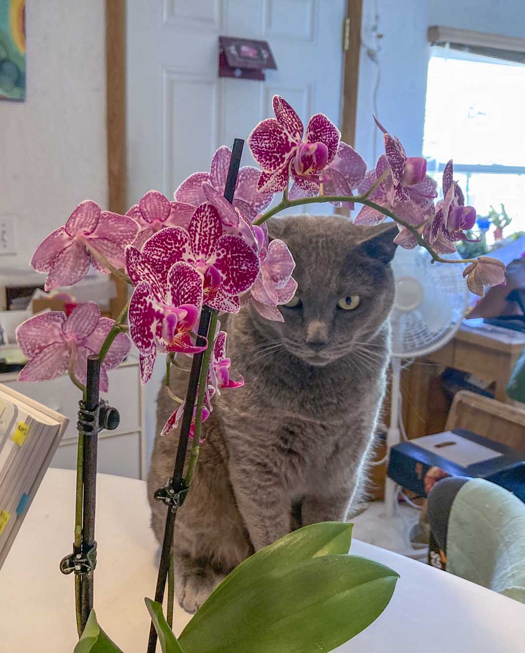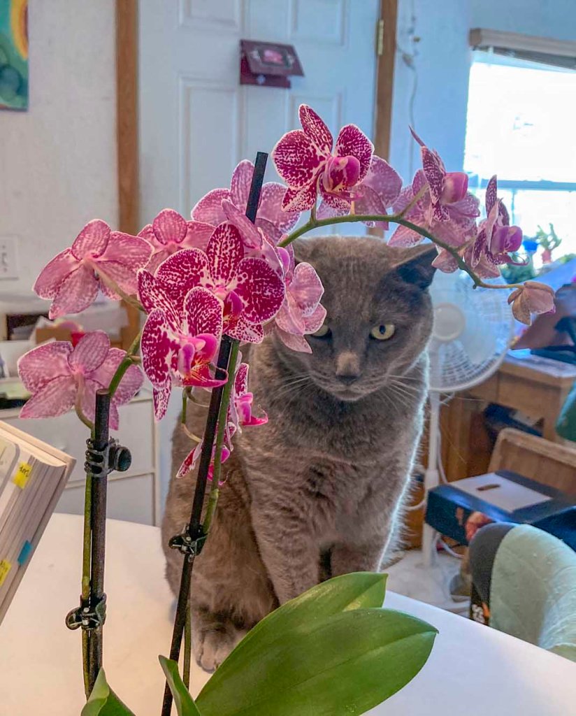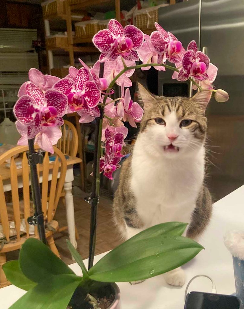 One of our orchids bloomed. It is not common for us to have orchids rebloom.