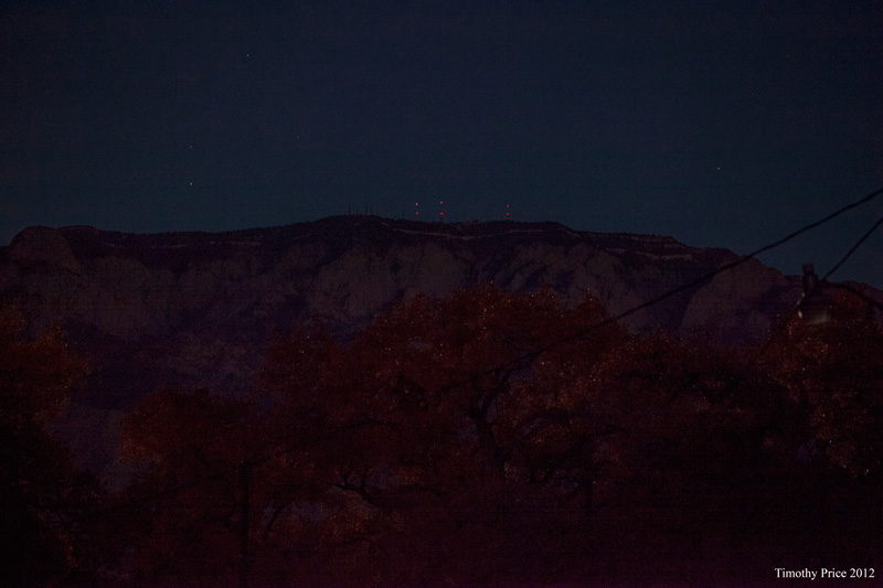 By The Moonlight October 30, 2012 Timothy Price3 Comments We didn’t get home in time for me to get a photo of the full moon peaking over the mountains, so I got the moon through our bamboo, moonlit corn, and the Sandias with golden cottonwoods by moonlight.