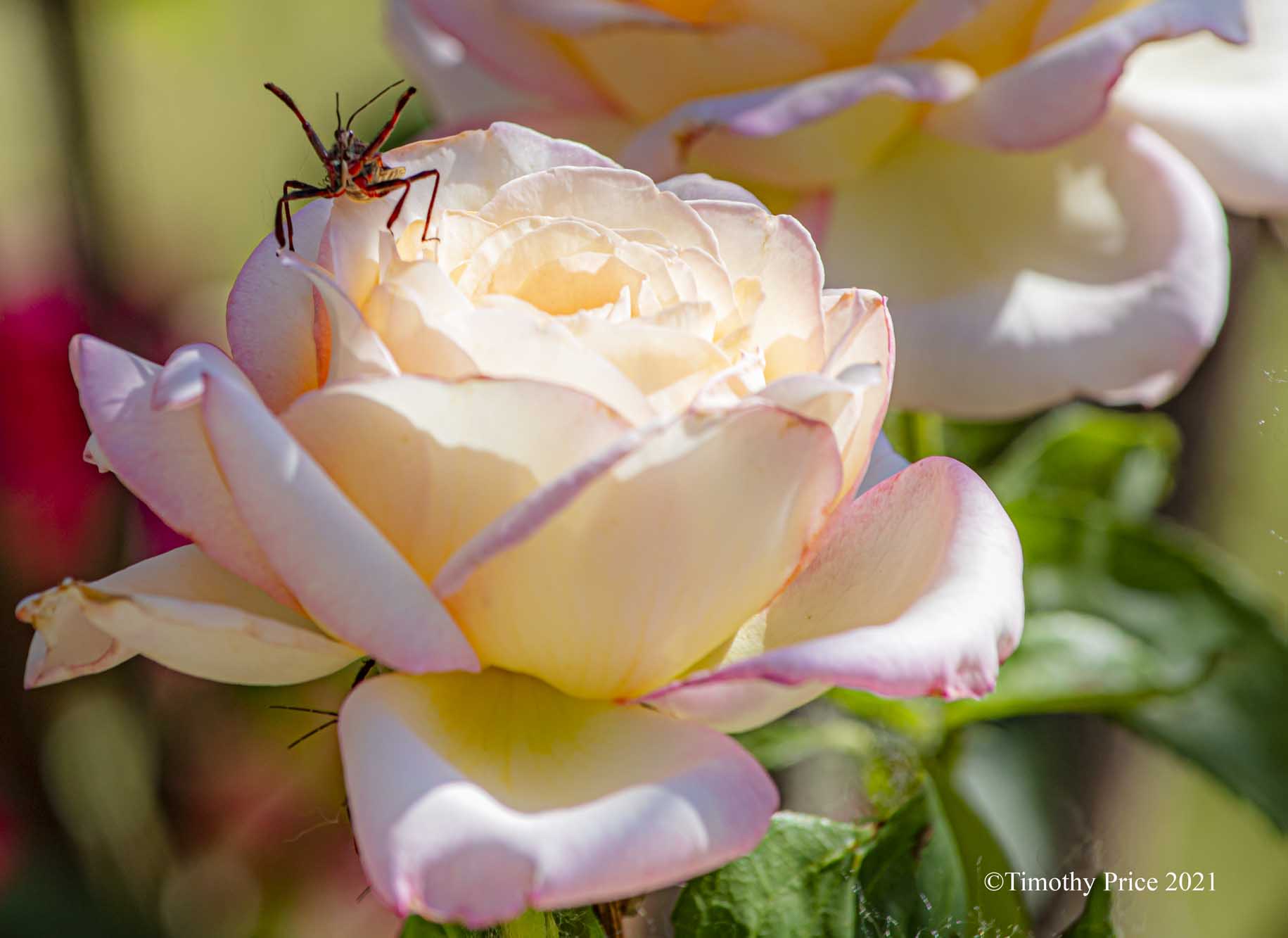 When the assassin bug on one of the Peace Roses saw the Bazooka pointing at him, he raised his little bug arms and said “Don’t Shoot!” before I shot him. After his initial shock of staring down the barrel of the Bazooka, he took flight and buzzed me as he flew by.