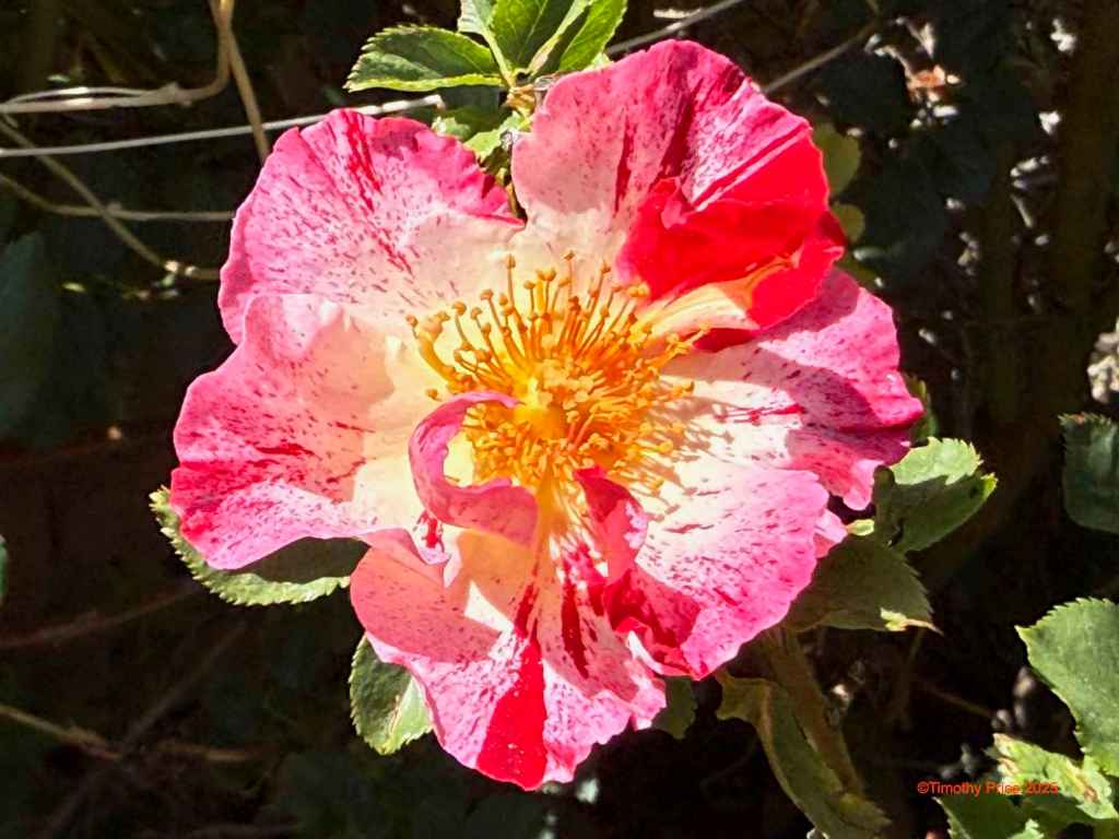 Rose bush, Marina’s Incognito Pear Tree, Julie’s Giant Dr. Huey, and the tops of Gigi’s and Tiffany’s trees in the background.