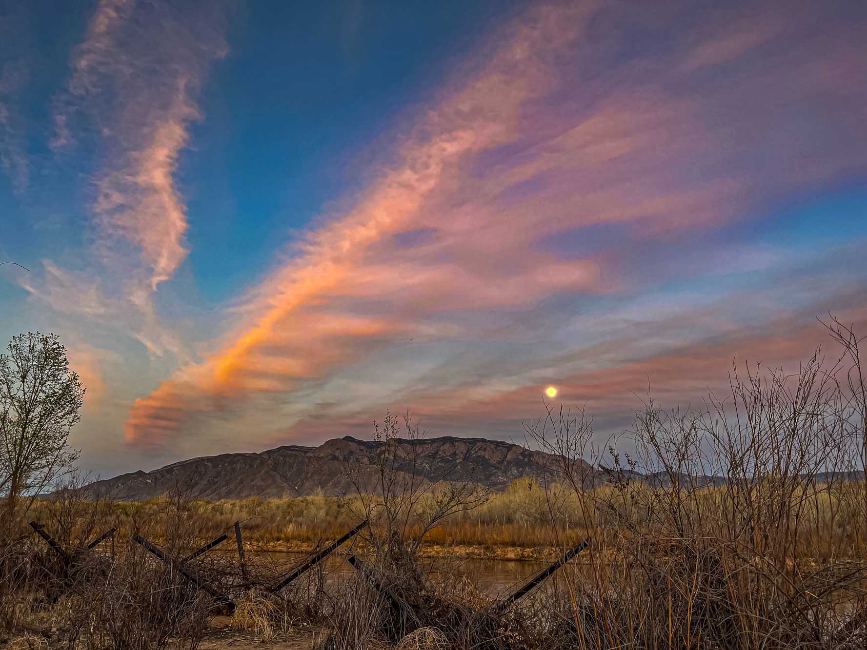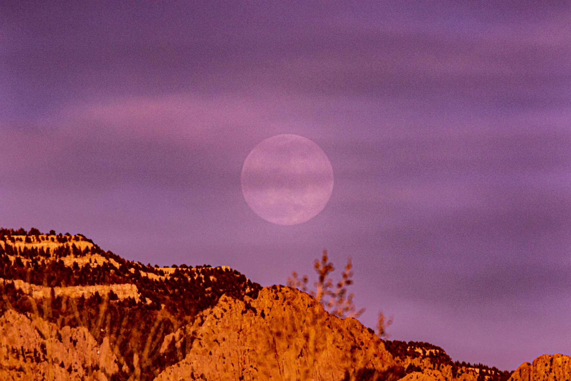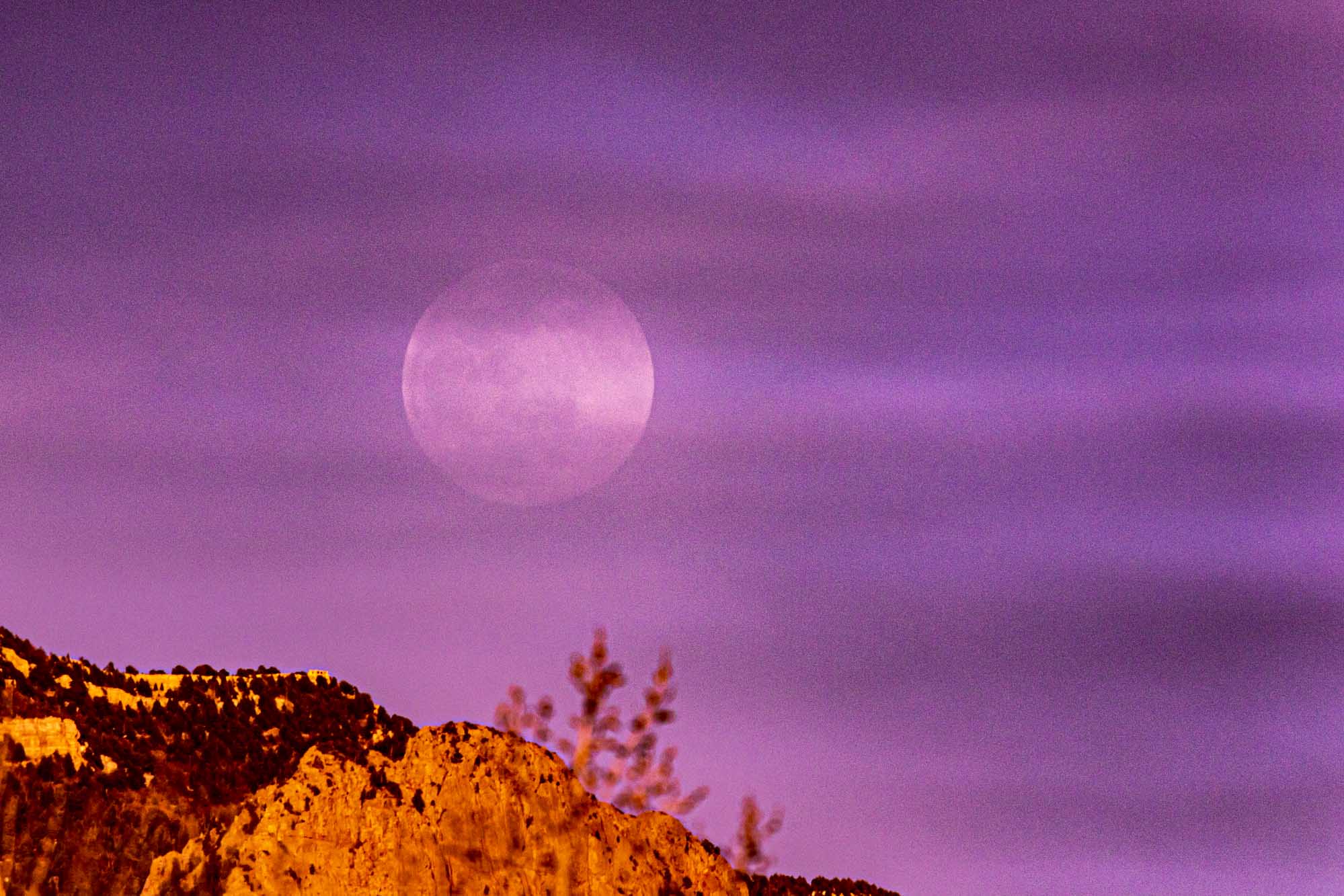 This is a series of the pink moon rising on April 6th when it was 100% full, but not the official “full moon” from the night before. The fifth photo shows Venus near the horizon under wild clouds.