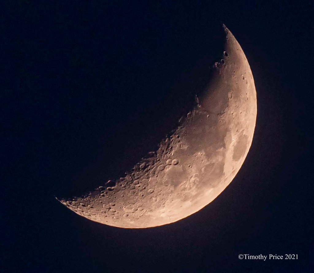 The moon got a sepia tone from the thin layer of clouds catching what color they could from the setting sun.