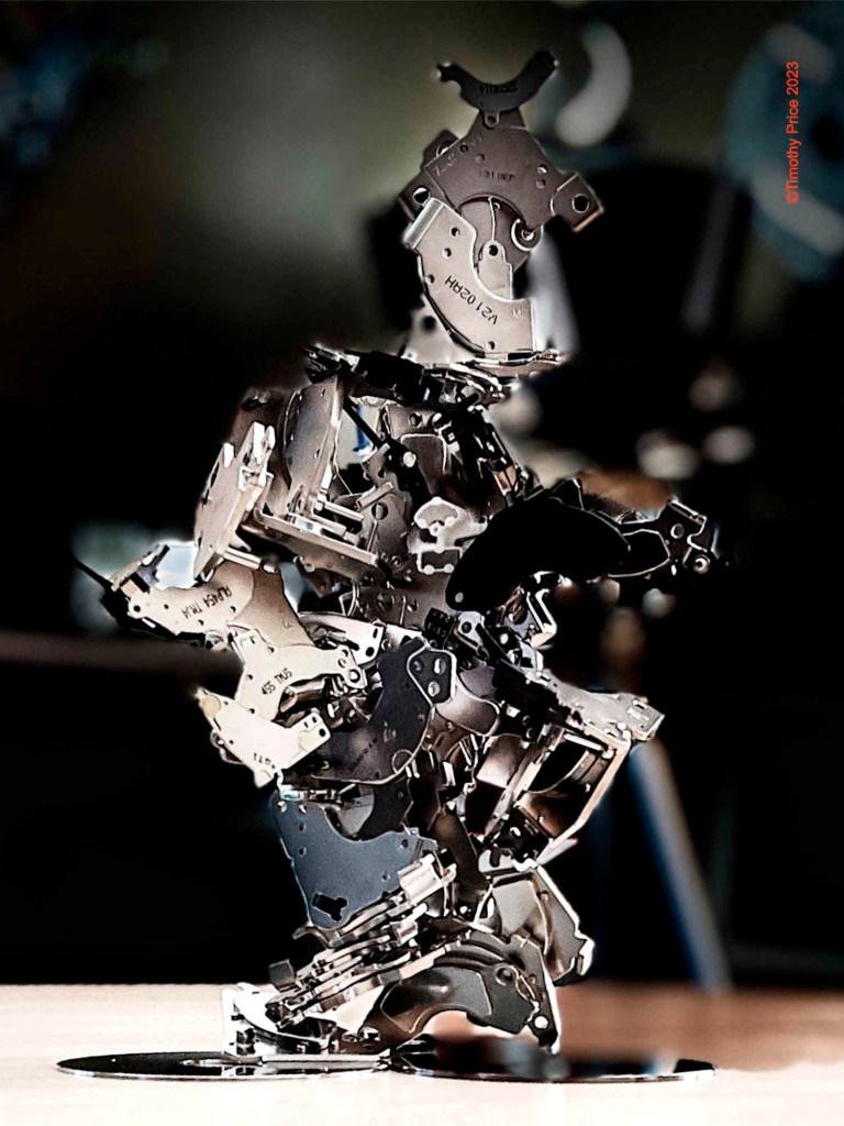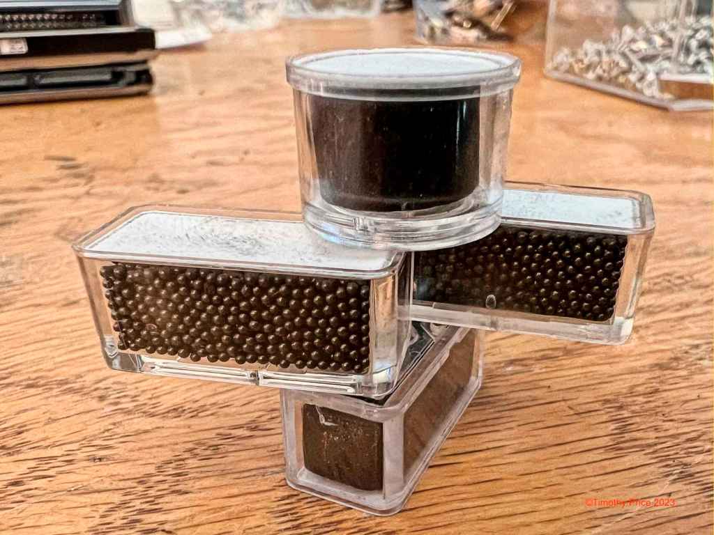 The first two photos are of the rare earth magnet sculpture I put together as I took the magnets out of the drive. I knocked the first sculpture over, trying to put lights on it, and much of it came apart. The third photo is the second sculpture I put together with lights. I didn’t like that one, so I gave up on the lights and put together the sculpture in the lead photo.