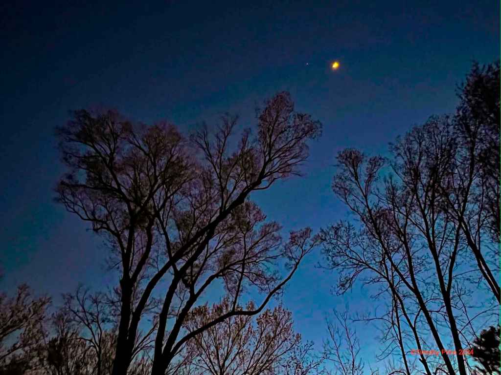 Below is a Red-Tailed Hawk that was in an apple tree in Wagner’s orchard nextdoor. The first two photos were taken this morning, and remaining photos where taken this evening after sunset. The mud had dried a little in the evening, so I walked across the field to get closer photos. The hawk flew which allowed me to get backlit photos of it flying.