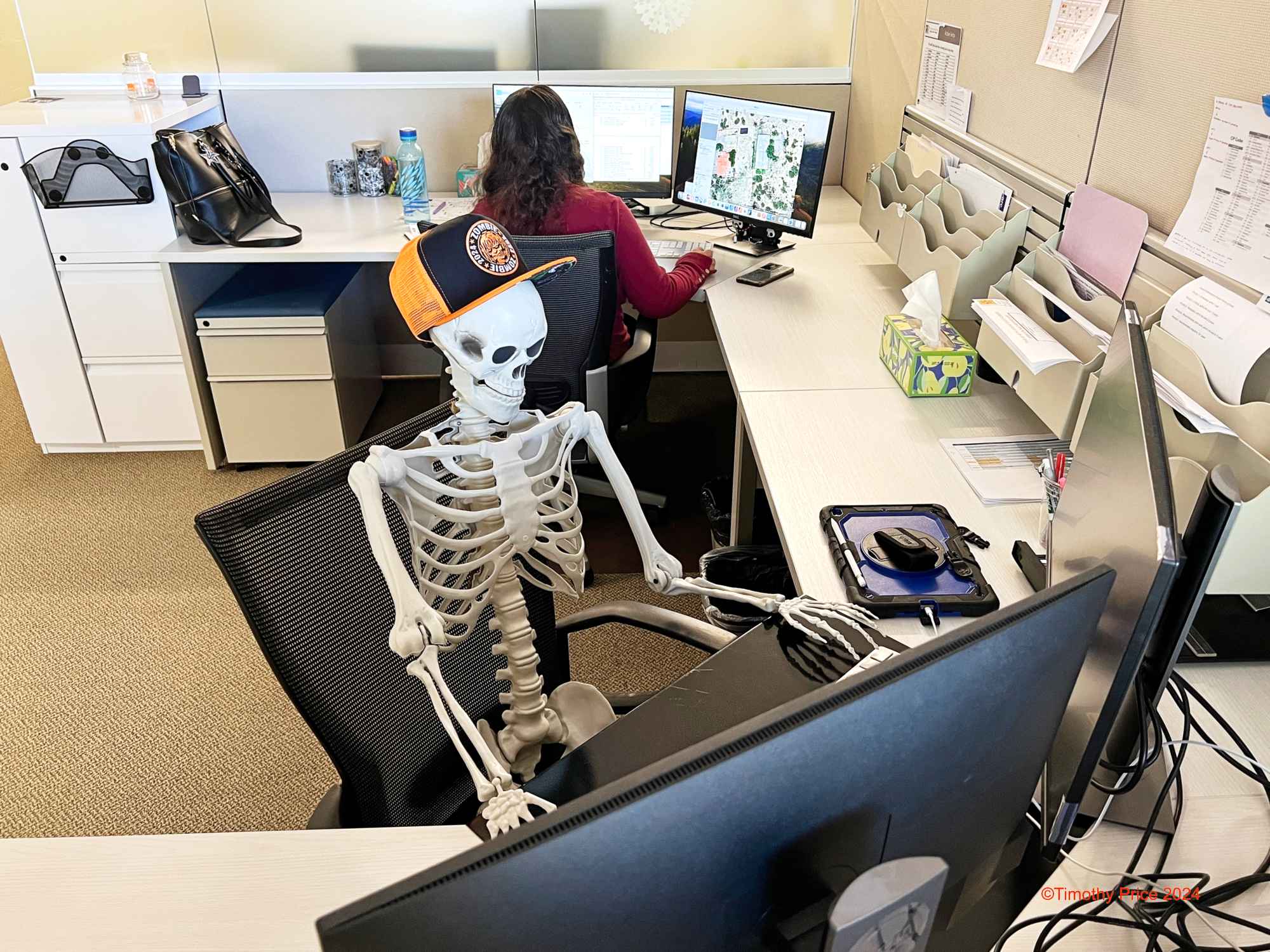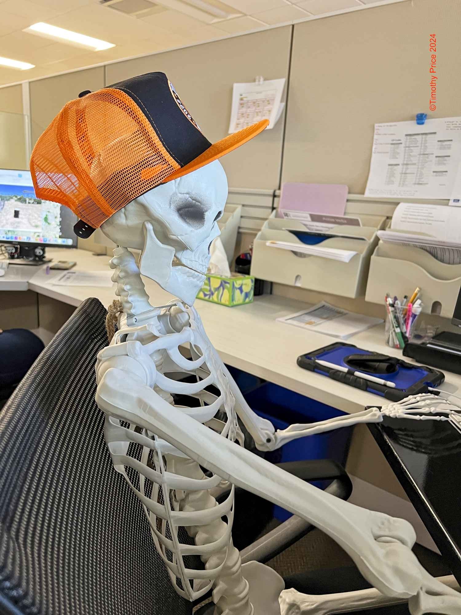 Staff are so hard to find these days. Vanessa dug up a skeleton for us—one benefit of having a graveyard down the road. While not the most productive staff, skeletons are good at mindless tasks.