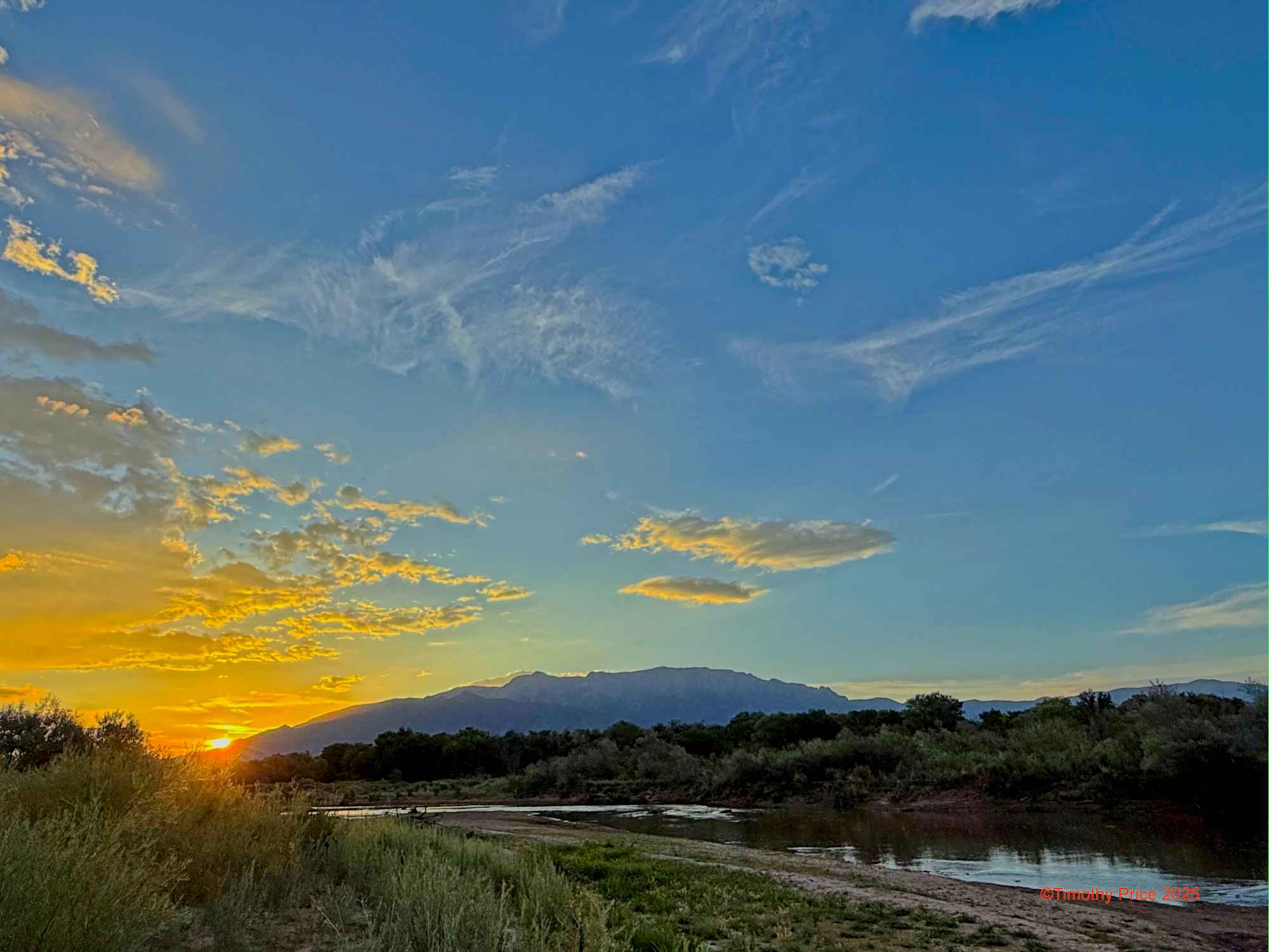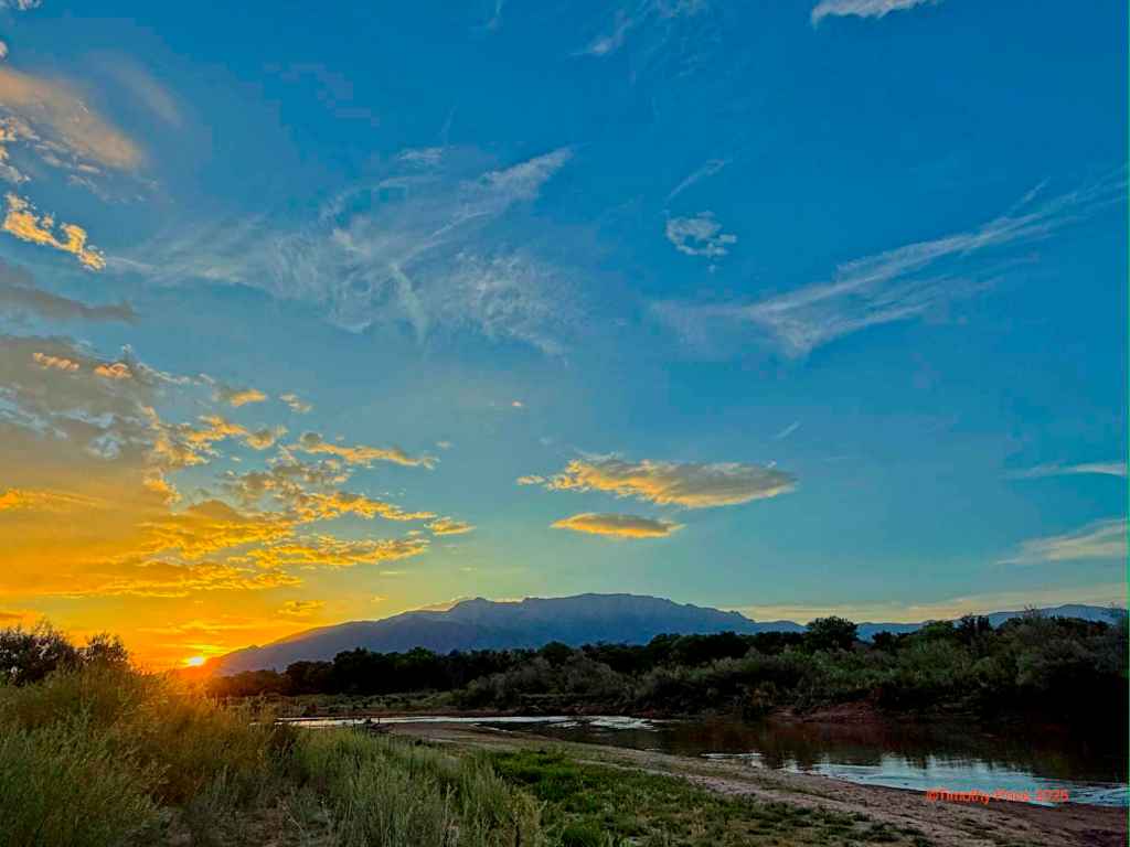 Jake and I went out for a walk at golden hour. The afternoon breezes had cleared out the smoke that covered the Sandias this morning.
