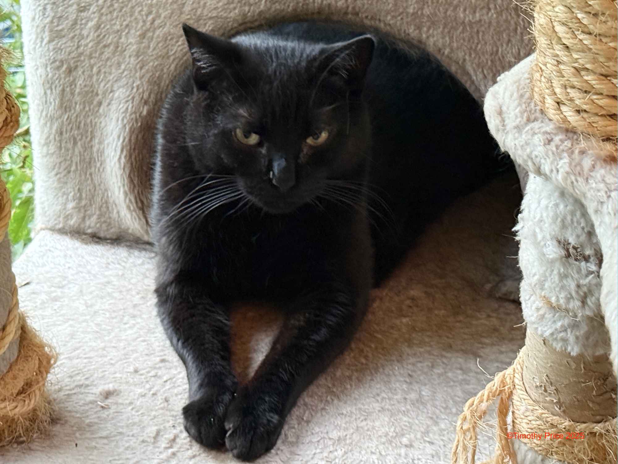 Spunk after a long night of killing his tail and ears and making Spunk Art.