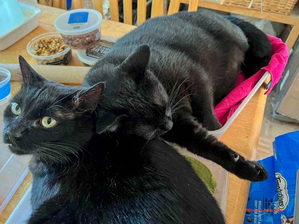 Marble snuggled in with Laurie while Laurie was sitting on the couch, reading.