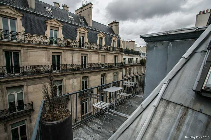 When we left Aix en Provence it was raining; it rained all the way to Paris, and when we came up out of the metro at Opera to go to the apartment we are renting, in was pouring rain. The first photo is a panorama of Aix viewed from up the hill from where we stayed. The second photo is a farm from the TGV traveling at 200 mph. The rest of the photos are of the apartment we are renting for the rest of our stay in Paris. It’s on the fifth floor (sixth, American) of a building at the corner of Ave de l’Opera and Rue d’Antin in Bourse, in the 2nd arrondissement, a block from the Palais Garnier – Opéra national de Paris (last photo).