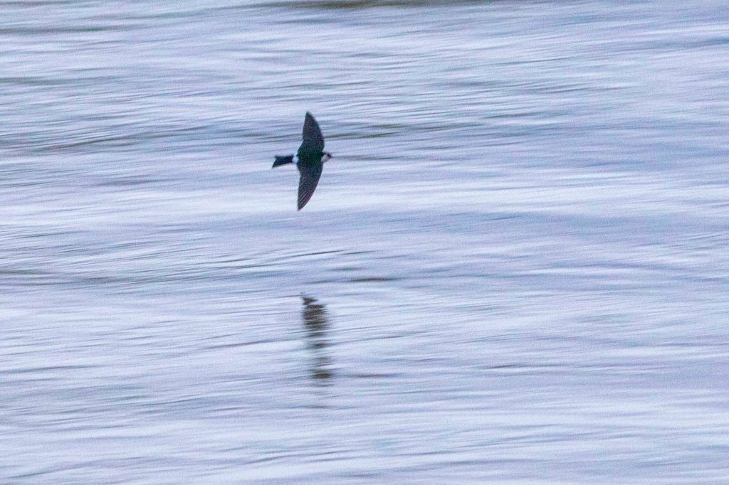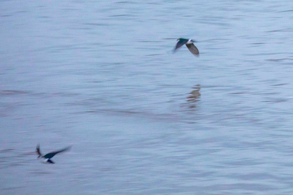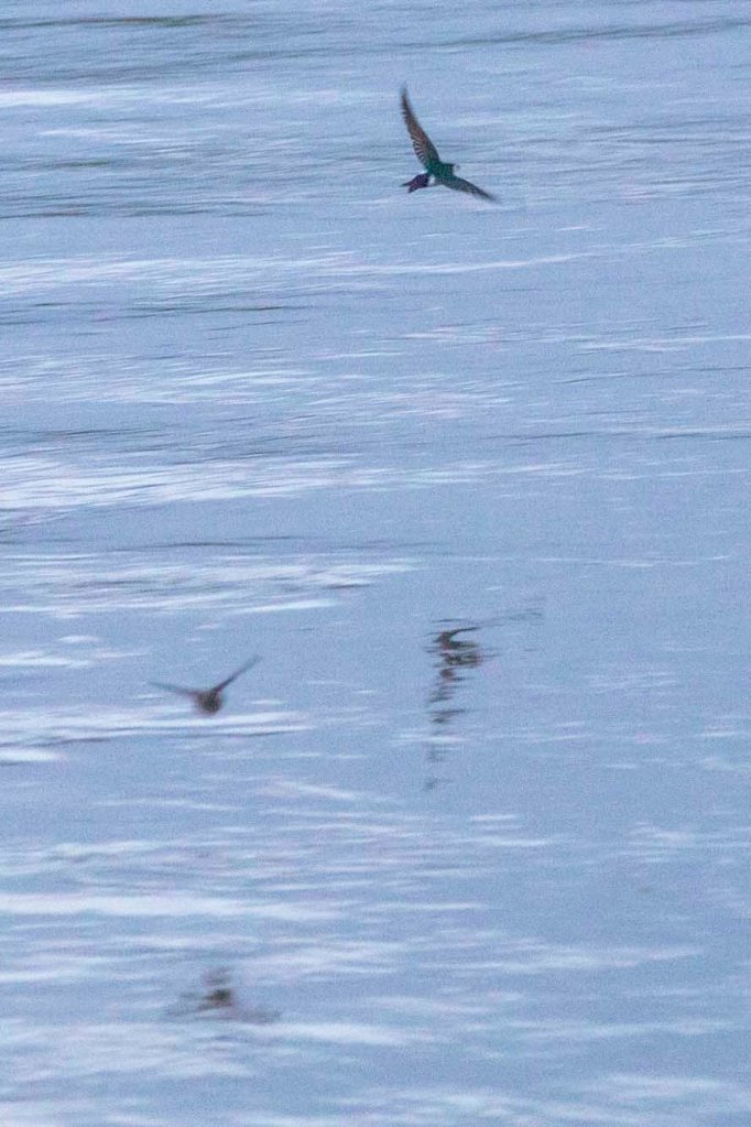 Violet-green Swallows were swarming over the river catching insects. They were also flying close to the water splashing in it as they skimmed the surface. I was not able to get still shots of them splashing.