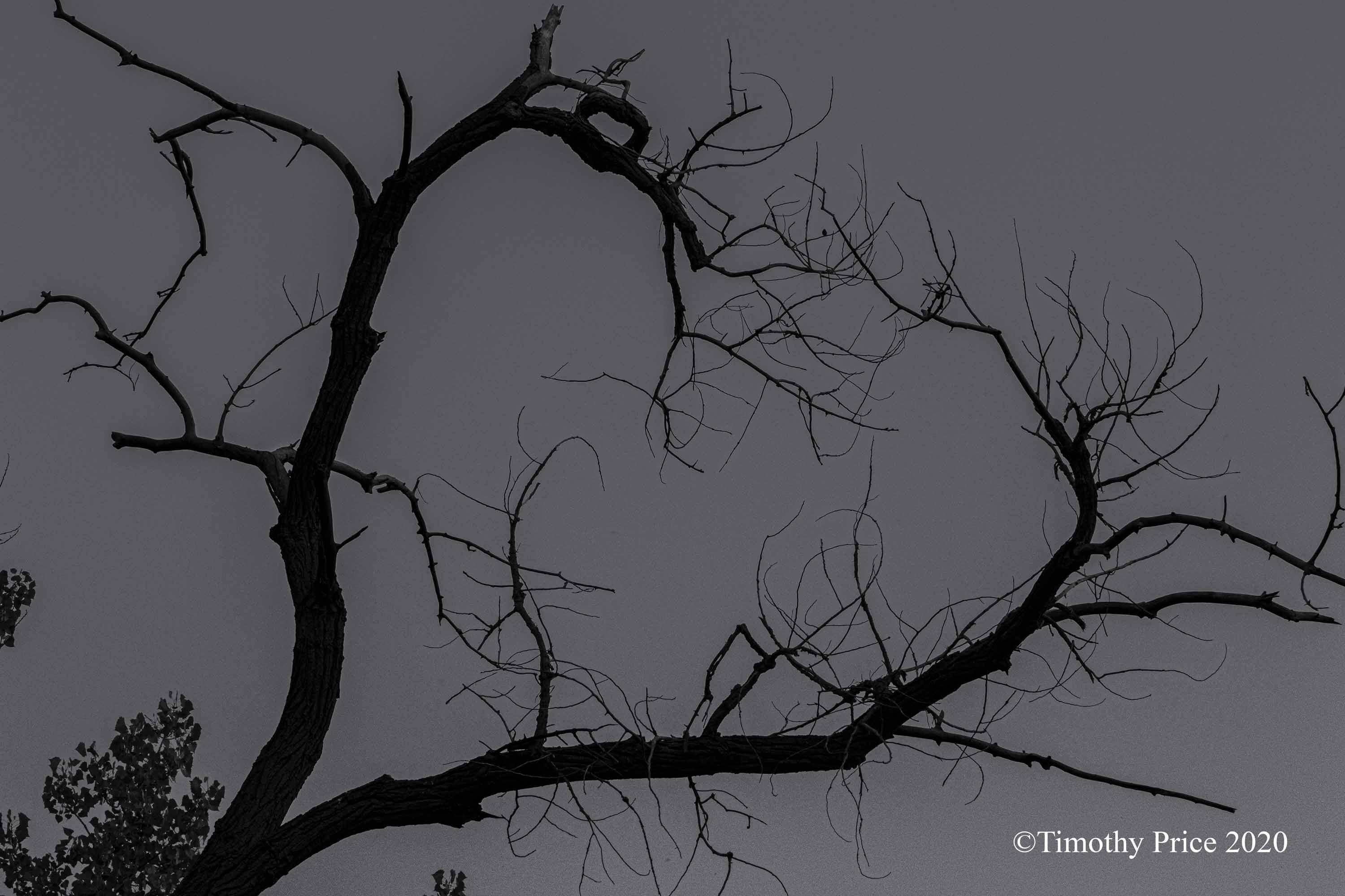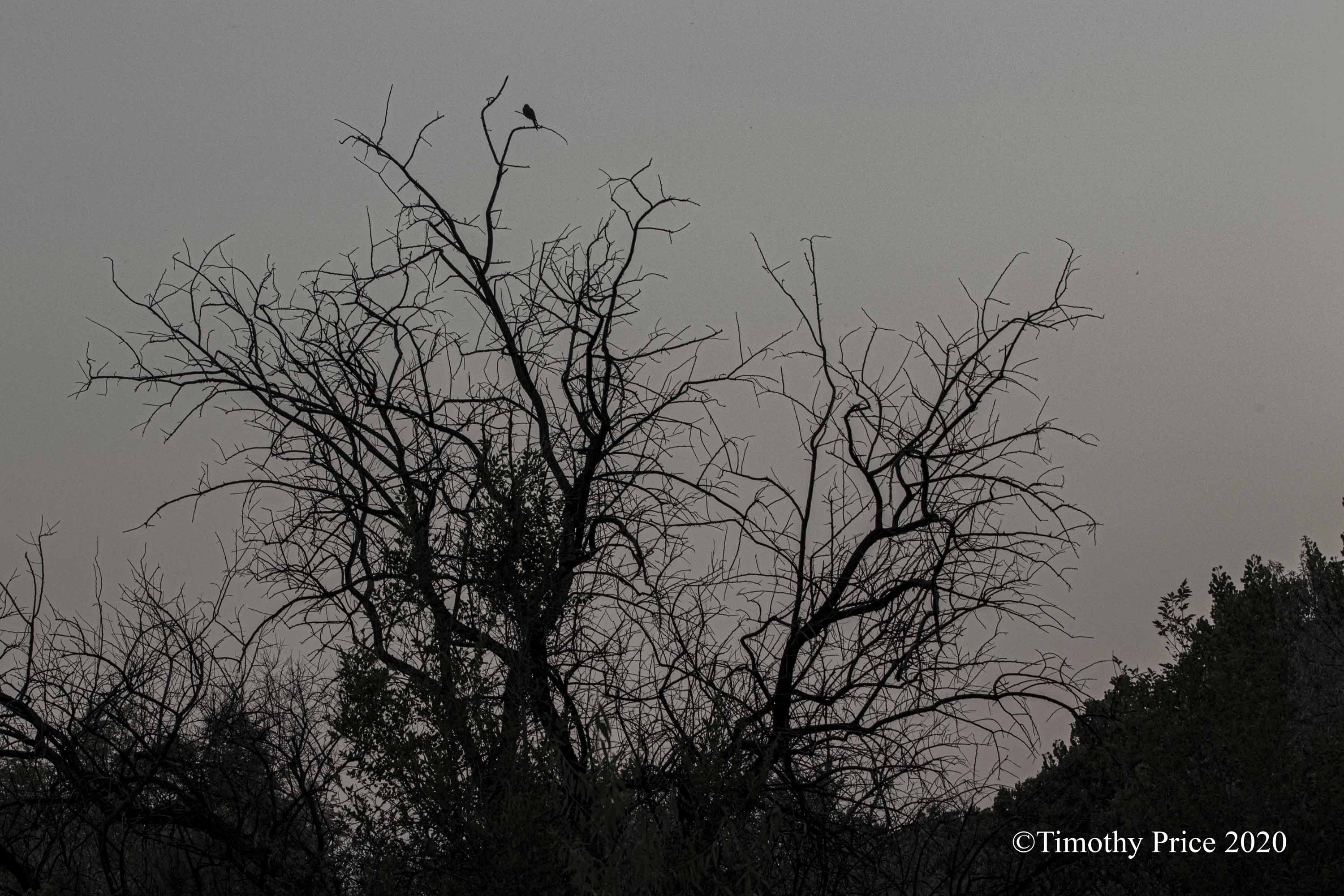 When I was out at Beaver Point just before sunset last night, I could see the clouds were really wild looking to the southeast, and I would get much better photos from the south bend about a quarter-mile downriver. I hightailed it south and along the way heard the owlets peeping in the cottonwoods between 4th of July Point and South Bend, but I could not see them. I got down to South Bend in time for some spectacularly wild clouds with the half-moon hanging behind them. On my way backed I looked for the owlets, but could not find them in the trees. There was still a lot of color in the clouds when I got to the Tangle Heart Tree, but the color had pretty much subsided to the east when I got to Shehanne’s tree on my way back home.