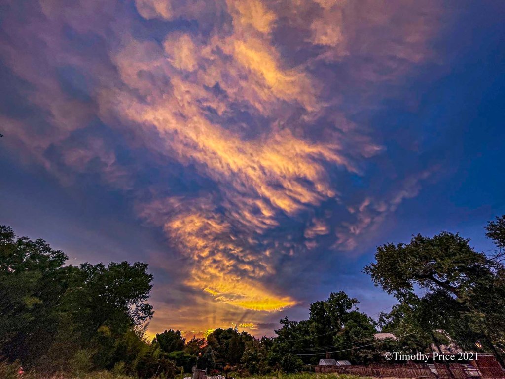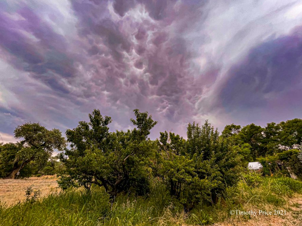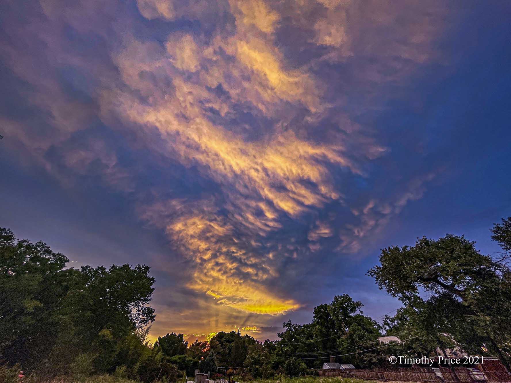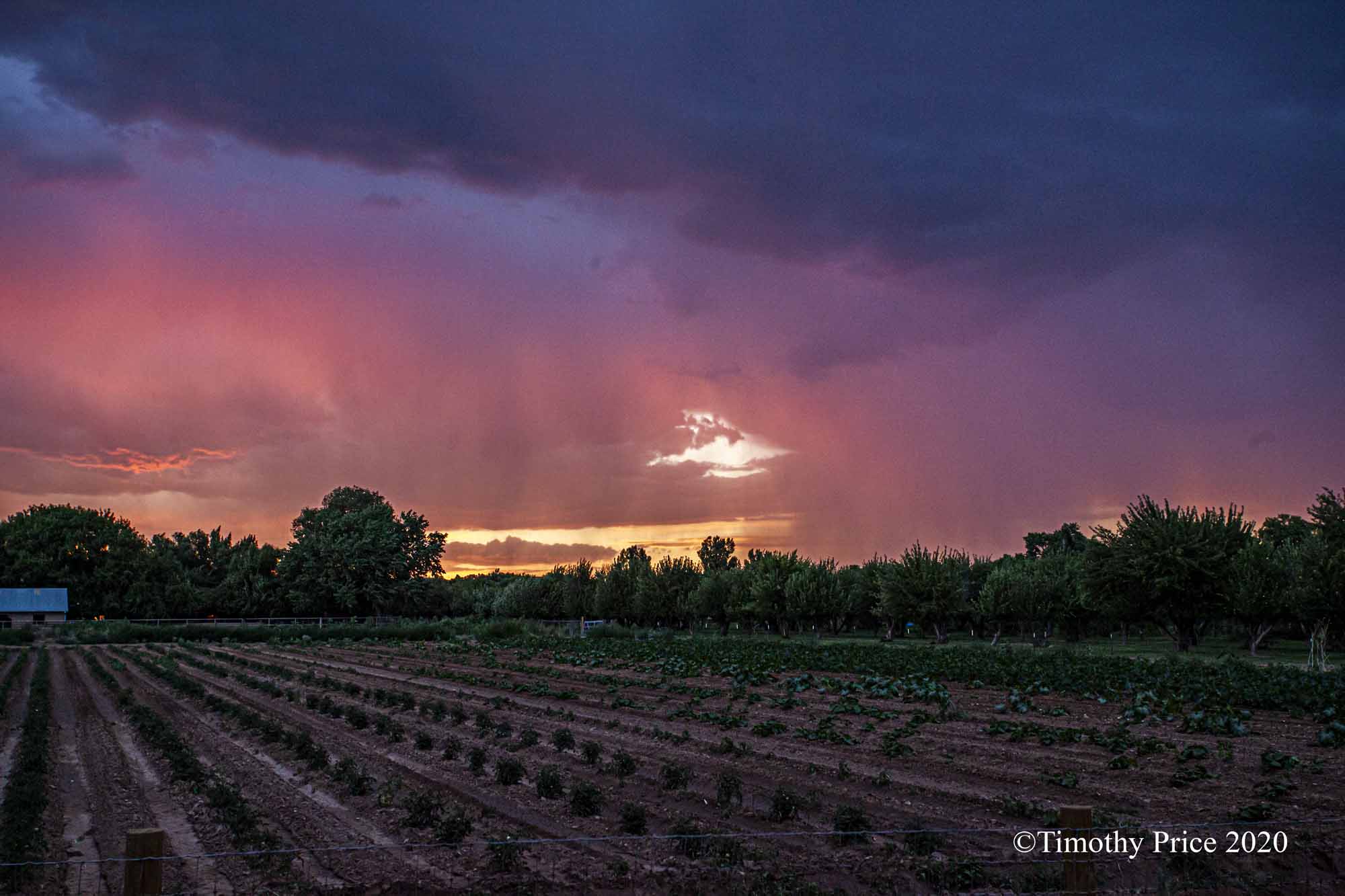 A thunderstorm blew in around 5:00 pm with a lot of noise and about 4 drops of rain. However, the temperature dropped from 103º F (39.4º C) to 89º F (31.6º C) in a matter of minutes.