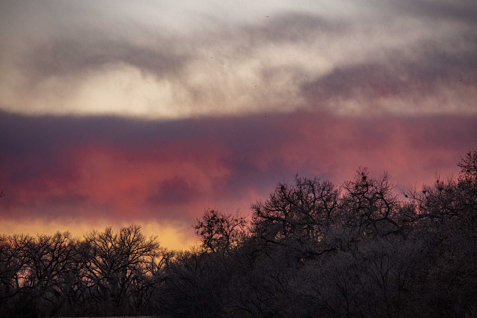 While Jake and I were out walking in freezing temperatures at daybreak, the cats were still asleep on the bed when we got back before sunrise. They were still sleeping in after sunrise.